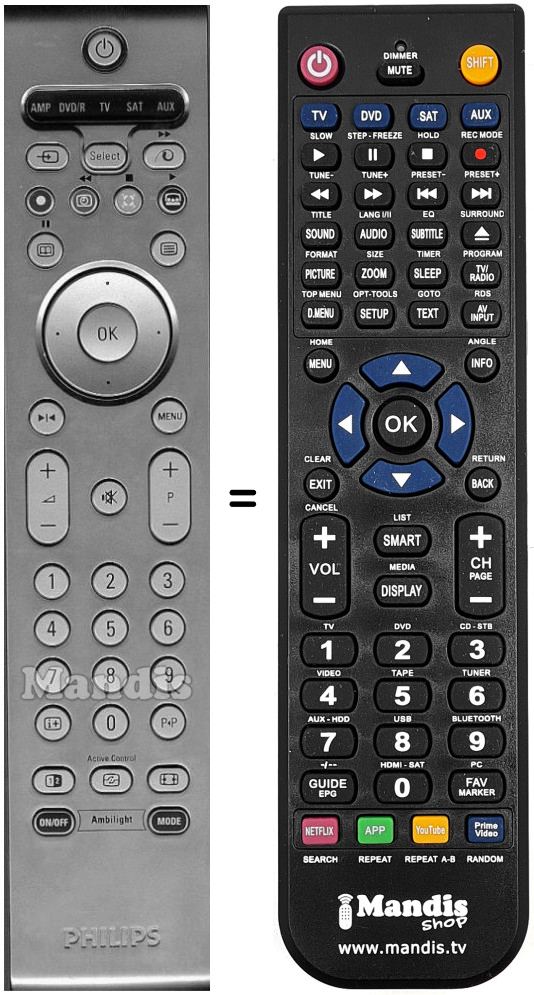 Comandament a distància que substitueix a l'original en totes les seves funcions.