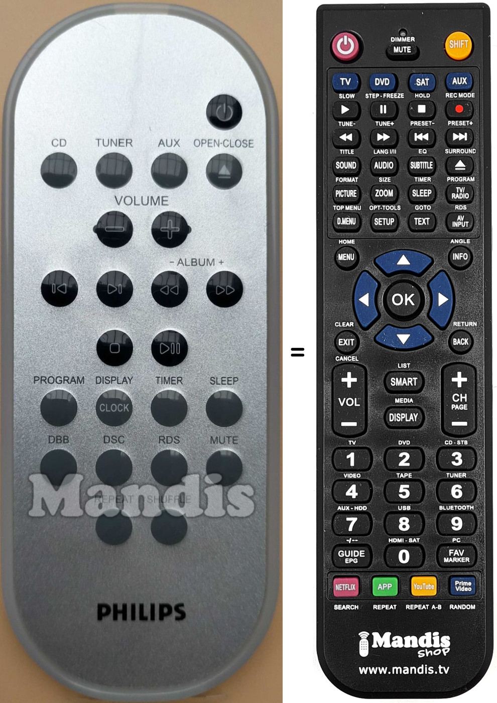 Comandament a distància que substitueix a l'original en totes les seves funcions.