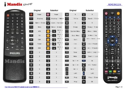 Inici > Marques > Comandaments a distància Phonola > Comandament per PHONOLA REMCON1229