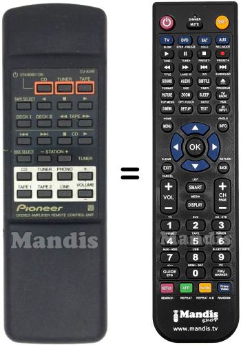 Aquest comandament a distància substitueix completament el teu CU-A019 (AXD7193) en totes les seves funcions. No és un comandament universal, sinó una còpia exacta del teu original.