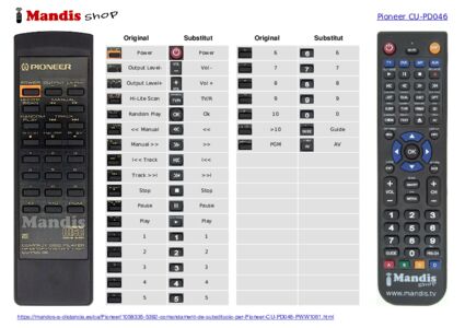 A continuació, us mostrarem la correspondència entre cada un dels botons del comandament original i el botó que realitza la mateixa funció en el comandament de substitució. En alguns casos, és possible que necessiti prémer la tecla SHIFT abans de prémer un altre botó per realitzar certes accions. Aquestes funcions addicionals sovint no s'utilitzen gaire i s'inclouen per facilitar la comprensió del comandament de substitució, o perquè el comandament original té més botons que el seu equivalent.