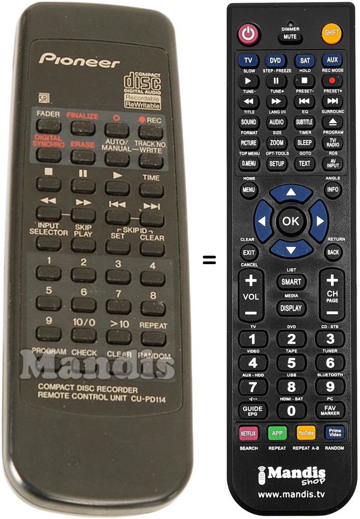 Comandament a distància recanvi CU-PD114 de la marca Pioneer.