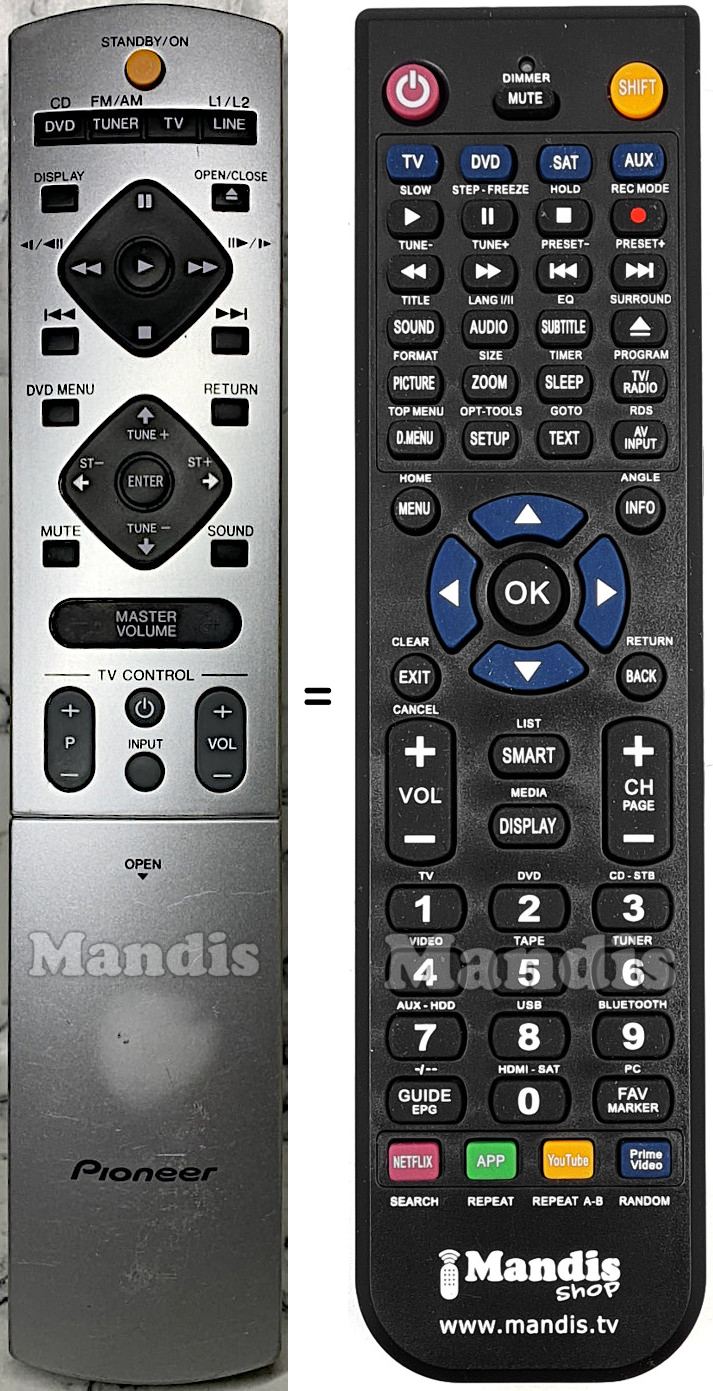Aquest comandament a distància substitueix completament el teu NS03E (AXD7368) en totes les seves funcions. No és un comandament universal, sinó una còpia exacta del teu original.