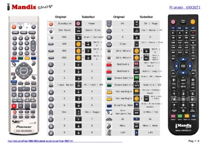 A continuació, us mostrarem la correspondència entre cada un dels botons del comandament original i el botó que realitza la mateixa funció en el comandament de substitució. En alguns casos, és possible que necessiti prémer la tecla SHIFT abans de prémer un altre botó per realitzar certes accions. Aquestes funcions addicionals sovint no s'utilitzen gaire i s'inclouen per facilitar la comprensió del comandament de substitució, o perquè el comandament original té més botons que el seu equivalent.