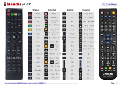 A continuació, us mostrarem la correspondència entre cada un dels botons del comandament original i el botó que realitza la mateixa funció en el comandament de substitució. En alguns casos, és possible que necessiti prémer la tecla SHIFT abans de prémer un altre botó per realitzar certes accions. Aquestes funcions addicionals sovint no s'utilitzen gaire i s'inclouen per facilitar la comprensió del comandament de substitució, o perquè el comandament original té més botons que el seu equivalent.