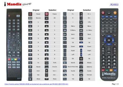 Aquest comandament a distància substitueix completament el teu RC4822 en totes les seves funcions. No és un comandament universal, sinó una còpia exacta del teu original.