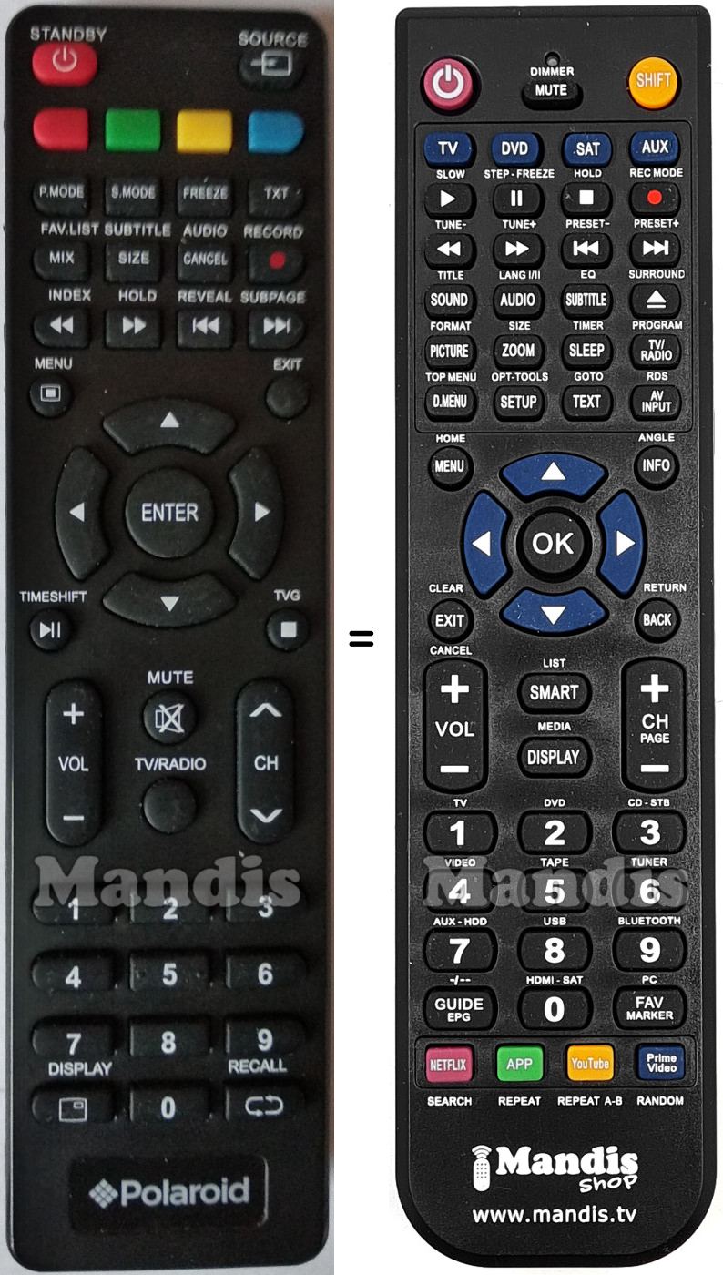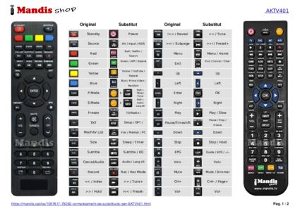 A continuació, us mostrarem la correspondència entre cada un dels botons del comandament original i el botó que realitza la mateixa funció en el comandament de substitució. En alguns casos, és possible que necessiti prémer la tecla SHIFT abans de prémer un altre botó per realitzar certes accions. Aquestes funcions addicionals sovint no s'utilitzen gaire i s'inclouen per facilitar la comprensió del comandament de substitució, o perquè el comandament original té més botons que el seu equivalent.