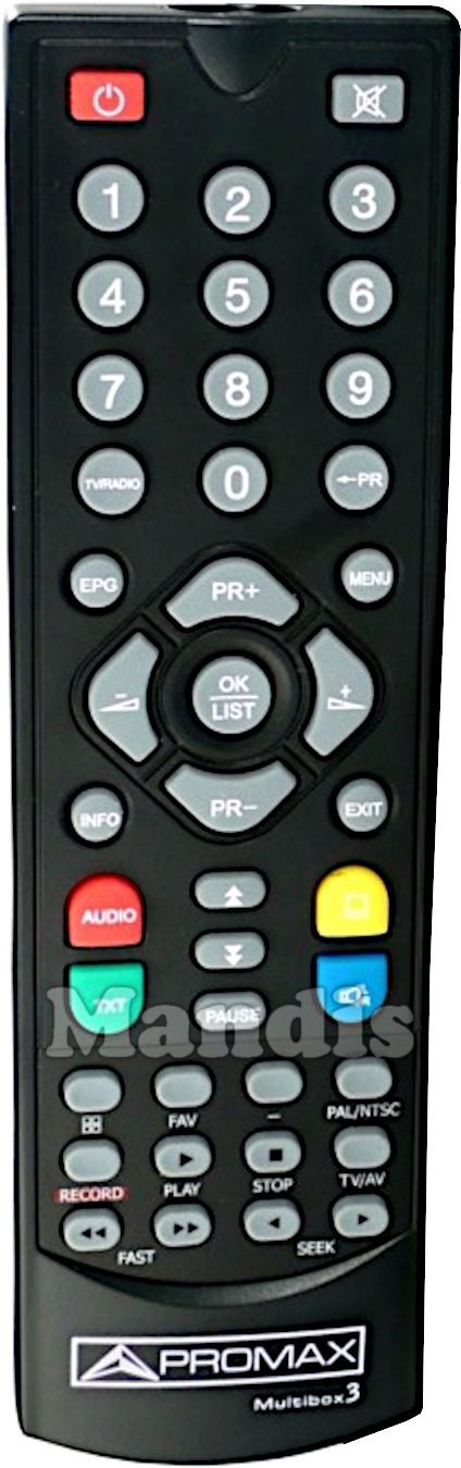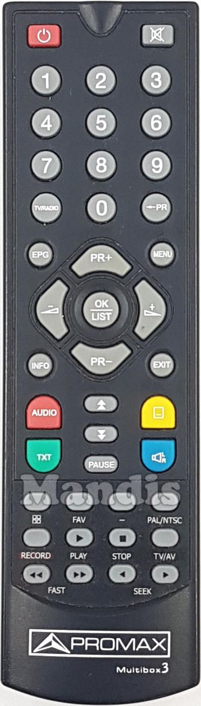 Comandament a distància original Multibox3 de la marca Promax. Es tracta d'un model original de comandament a distància.