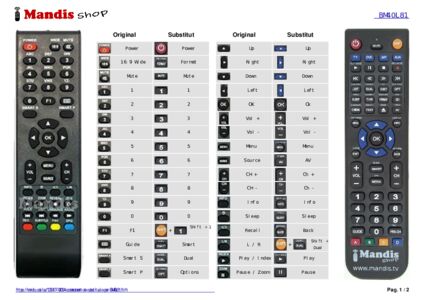 A continuació, us mostrarem la correspondència entre cada un dels botons del comandament original i el botó que realitza la mateixa funció en el comandament de substitució. En alguns casos, és possible que necessiti prémer la tecla SHIFT abans de prémer un altre botó per realitzar certes accions. Aquestes funcions addicionals sovint no s'utilitzen gaire i s'inclouen per facilitar la comprensió del comandament de substitució, o perquè el comandament original té més botons que el seu equivalent.