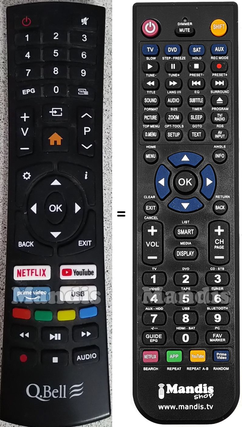 Aquest comandament a distància substitueix completament el teu QT32NX73 en totes les seves funcions. No és un comandament universal, sinó una còpia exacta del teu original.