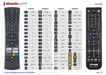 S'inclou un document amb la correspondència dels botons del nou comandament a distància per facilitar el seu ús.