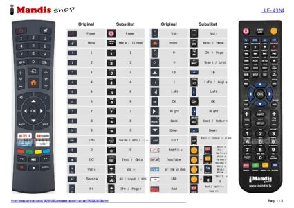 Aquest comandament a distància substitueix completament el teu DVB-T2S2C (LE-43N4) en totes les seves funcions. No és un comandament universal, sinó una còpia exacta del teu original.