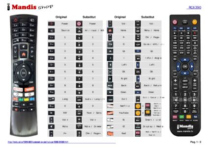 Aquest comandament a distància substitueix completament el teu RC4390 (30100824) en totes les seves funcions. No és un comandament universal, sinó una còpia exacta del teu original.