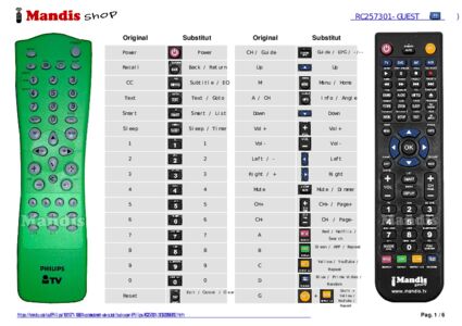 Aquest comandament a distància substitueix completament el teu RC 2573 / 01 en totes les seves funcions. No és un comandament universal, sinó una còpia exacta del teu original.