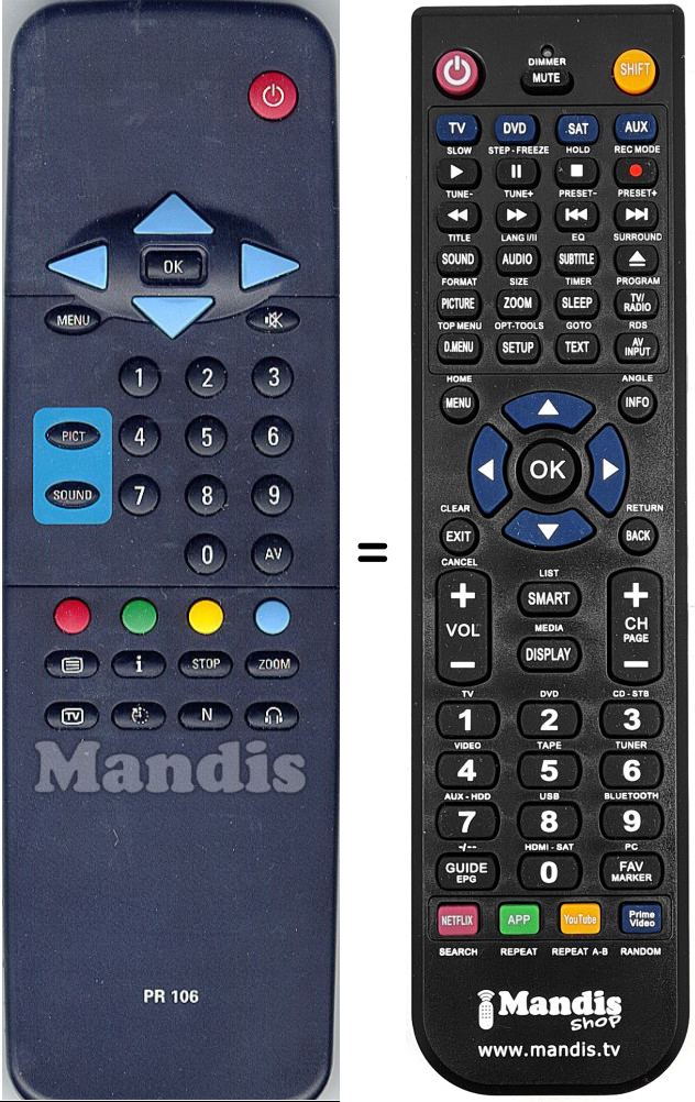 Comandament a distància que substitueix a l'original en totes les seves funcions.