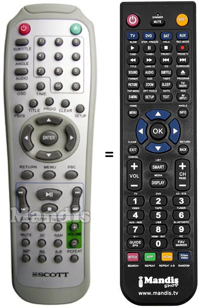 Comandament a distància que substitueix a l'original en totes les seves funcions.