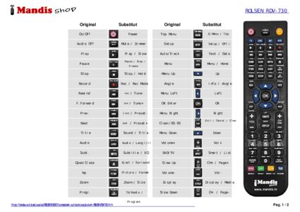Inici > Marques > Comandaments a distància ROLSEN > Comandament per ROLSEN RDV-730 > Distribució interactiva de tecles ROLSEN RDV-730