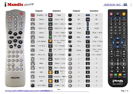 A continuació, us mostrarem la correspondència entre cada un dels botons del comandament original i el botó que realitza la mateixa funció en el comandament de substitució. En alguns casos, és possible que necessiti prémer la tecla SHIFT abans de prémer un altre botó per realitzar certes accions. Aquestes funcions addicionals sovint no s'utilitzen gaire i s'inclouen per facilitar la comprensió del comandament de substitució, o perquè el comandament original té més botons que el seu equivalent.