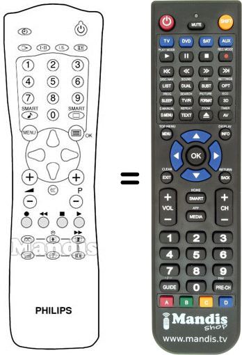 Aquest comandament a distància substitueix completament el teu REMCON948 en totes les seves funcions. No és un comandament universal, sinó una còpia exacta del teu original.