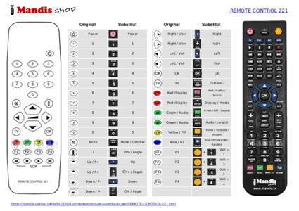 A continuació, us mostrarem la correspondència entre cada un dels botons del comandament original i el botó que realitza la mateixa funció en el comandament de substitució. En alguns casos, és possible que necessiti prémer la tecla SHIFT abans de prémer un altre botó per realitzar certes accions. Aquestes funcions addicionals sovint no s'utilitzen gaire i s'inclouen per facilitar la comprensió del comandament de substitució, o perquè el comandament original té més botons que el seu equivalent.
