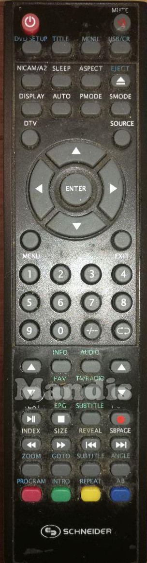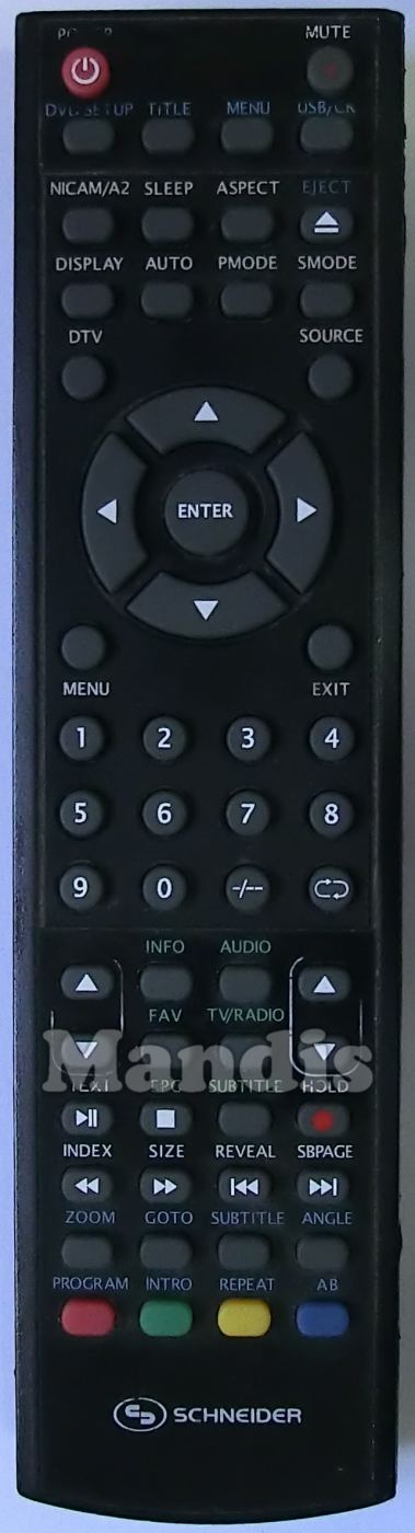 Comandament a distància original SFERE 2219 DVD PVR que serveix per televisors de la marca SCHNEIDER. Es tracta d'un model original de comandament a distància.
