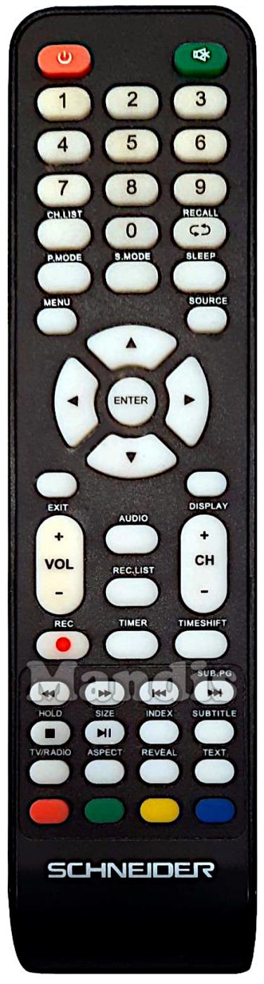 Comandament a distància original SCHNE002 que serveix per televisors de la marca SCHNEIDER. Es tracta d'un model original de comandament a distància.