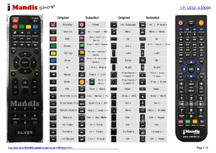 A continuació, us mostrarem la correspondència entre cada un dels botons del comandament original i el botó que realitza la mateixa funció en el comandament de substitució. En alguns casos, és possible que necessiti prémer la tecla SHIFT abans de prémer un altre botó per realitzar certes accions. Aquestes funcions addicionals sovint no s'utilitzen gaire i s'inclouen per facilitar la comprensió del comandament de substitució, o perquè el comandament original té més botons que el seu equivalent.
