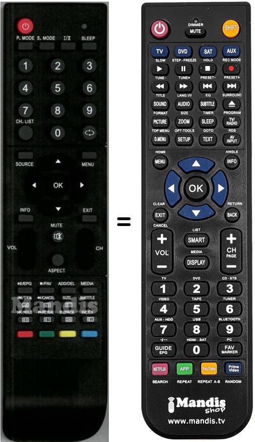 Comandament a distància que substitueix a l'original en totes les seves funcions.
