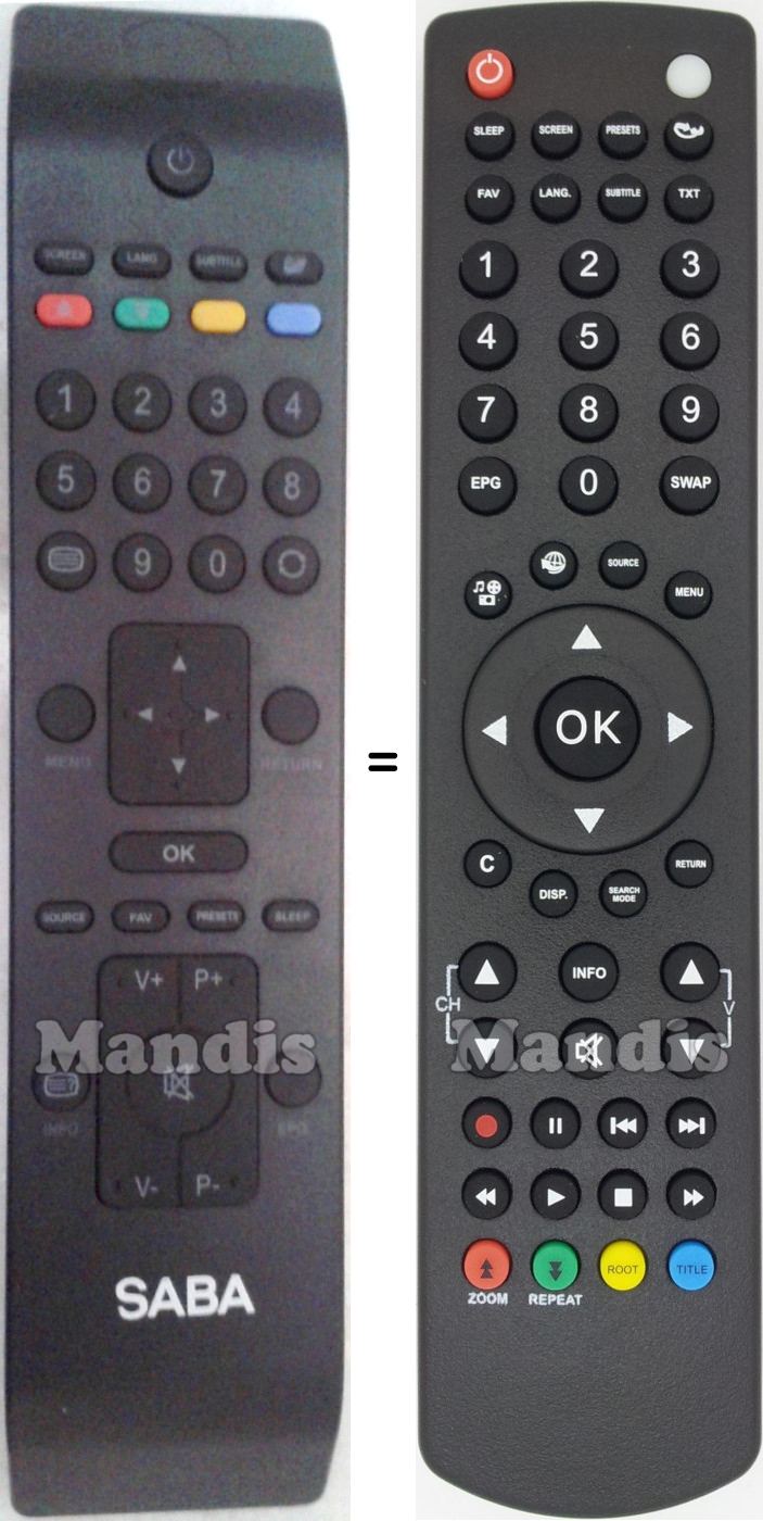 Comandaments equivalents que substitueixen en totes les seves funcions al comandament SABA RC 1910 (30070046):