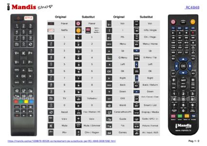 A continuació, us mostrarem la correspondència entre cada un dels botons del comandament original i el botó que realitza la mateixa funció en el comandament de substitució. En alguns casos, és possible que necessiti prémer la tecla SHIFT abans de prémer un altre botó per realitzar certes accions. Aquestes funcions addicionals sovint no s'utilitzen gaire i s'inclouen per facilitar la comprensió del comandament de substitució, o perquè el comandament original té més botons que el seu equivalent.