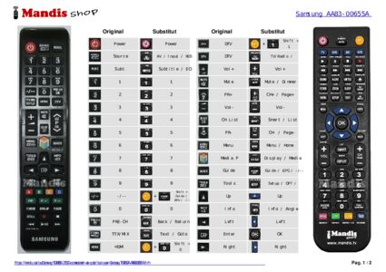 A continuació, us mostrarem la correspondència entre cada un dels botons del comandament original i el botó que realitza la mateixa funció en el comandament de substitució. En alguns casos, és possible que necessiti prémer la tecla SHIFT abans de prémer un altre botó per realitzar certes accions. Aquestes funcions addicionals sovint no s'utilitzen gaire i s'inclouen per facilitar la comprensió del comandament de substitució, o perquè el comandament original té més botons que el seu equivalent.