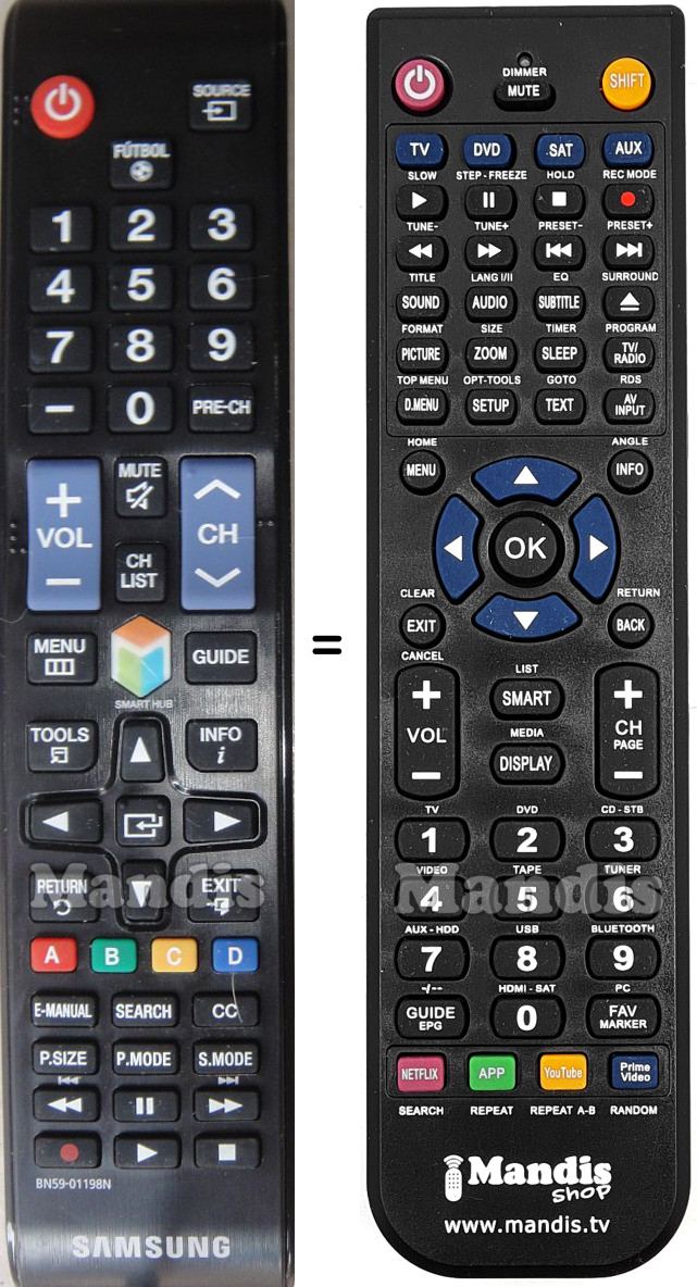 Aquest comandament a distància substitueix completament el teu BN59-01198N en totes les seves funcions. No és un comandament universal, sinó una còpia exacta del teu original.