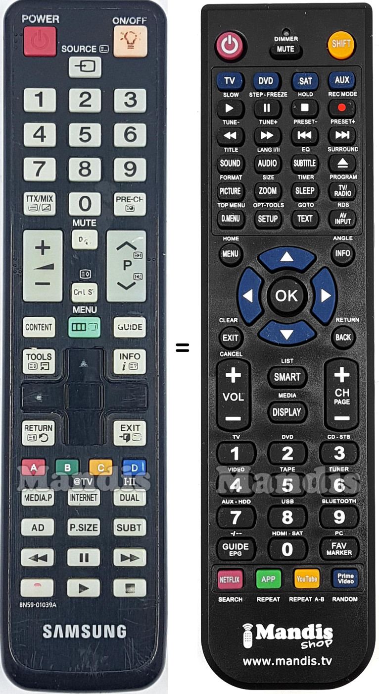 Aquest comandament a distància substitueix completament el teu BN59-01039A (MI-BN5901039A) en totes les seves funcions. No és un comandament universal, sinó una còpia exacta del teu original.