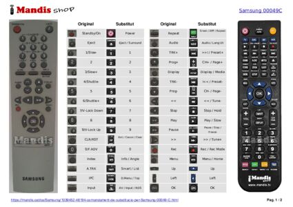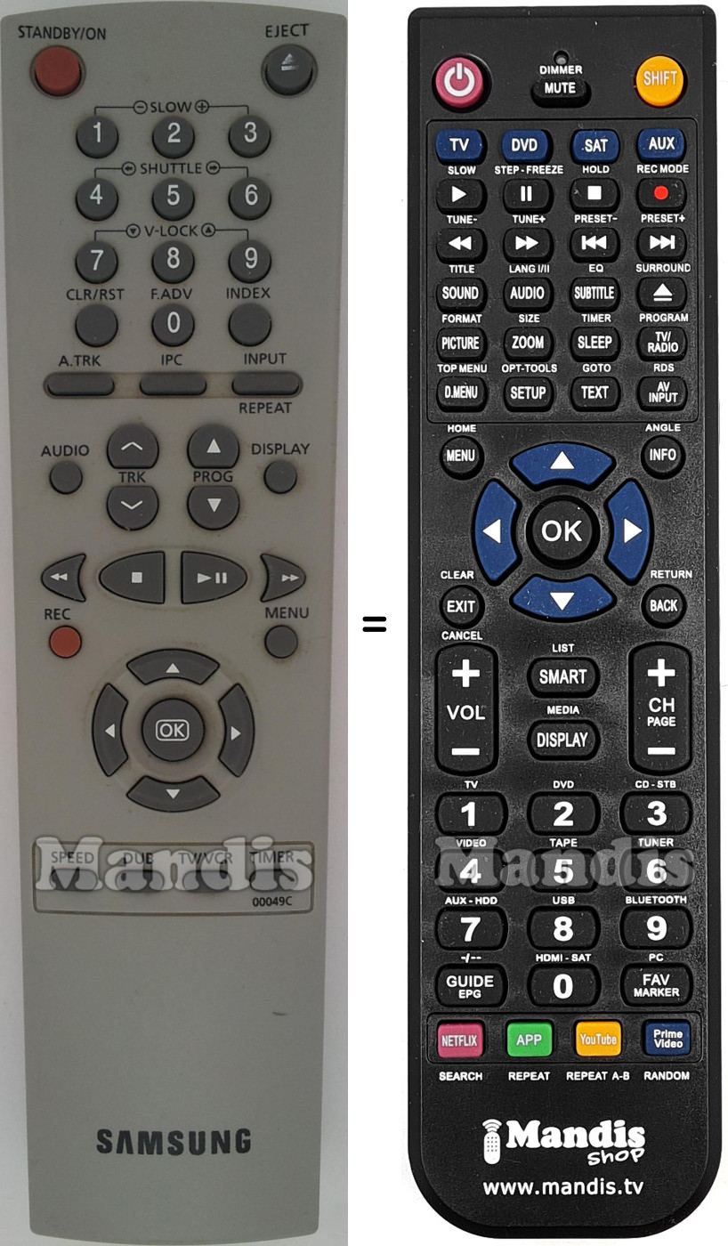 Aquest comandament a distància substitueix completament el teu 00049 C en totes les seves funcions. No és un comandament universal, sinó una còpia exacta del teu original.