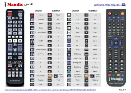 Aquest comandament a distància substitueix la majoria de les funcions del teu TM1151 KOREA (AH59-02338A). No és un comandament universal, sinó una còpia amb la majoria de les tecles i funcions del teu original.