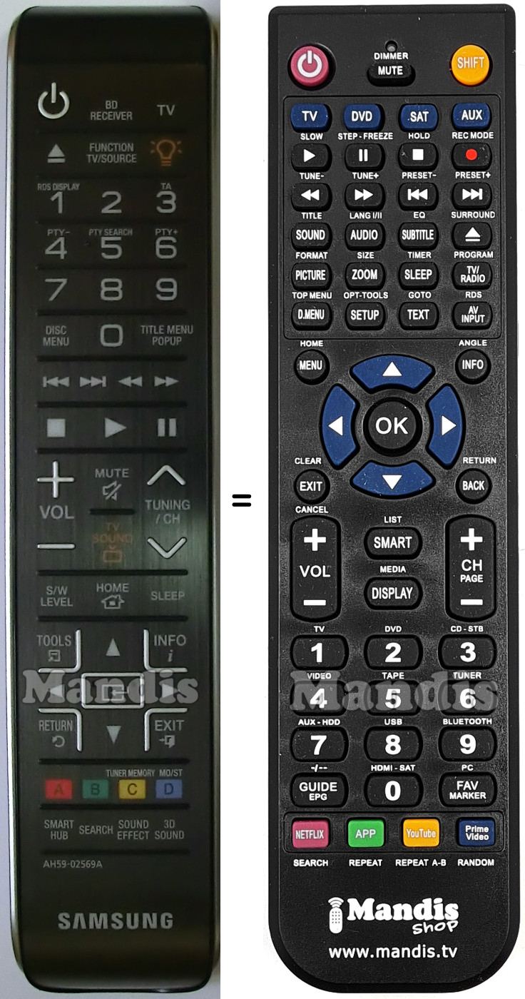 A continuació, us mostrarem la correspondència entre cada un dels botons del comandament original i el botó que realitza la mateixa funció en el comandament de substitució. En alguns casos, és possible que necessiti prémer la tecla SHIFT abans de prémer un altre botó per realitzar certes accions. Aquestes funcions addicionals sovint no s'utilitzen gaire i s'inclouen per facilitar la comprensió del comandament de substitució, o perquè el comandament original té més botons que el seu equivalent.