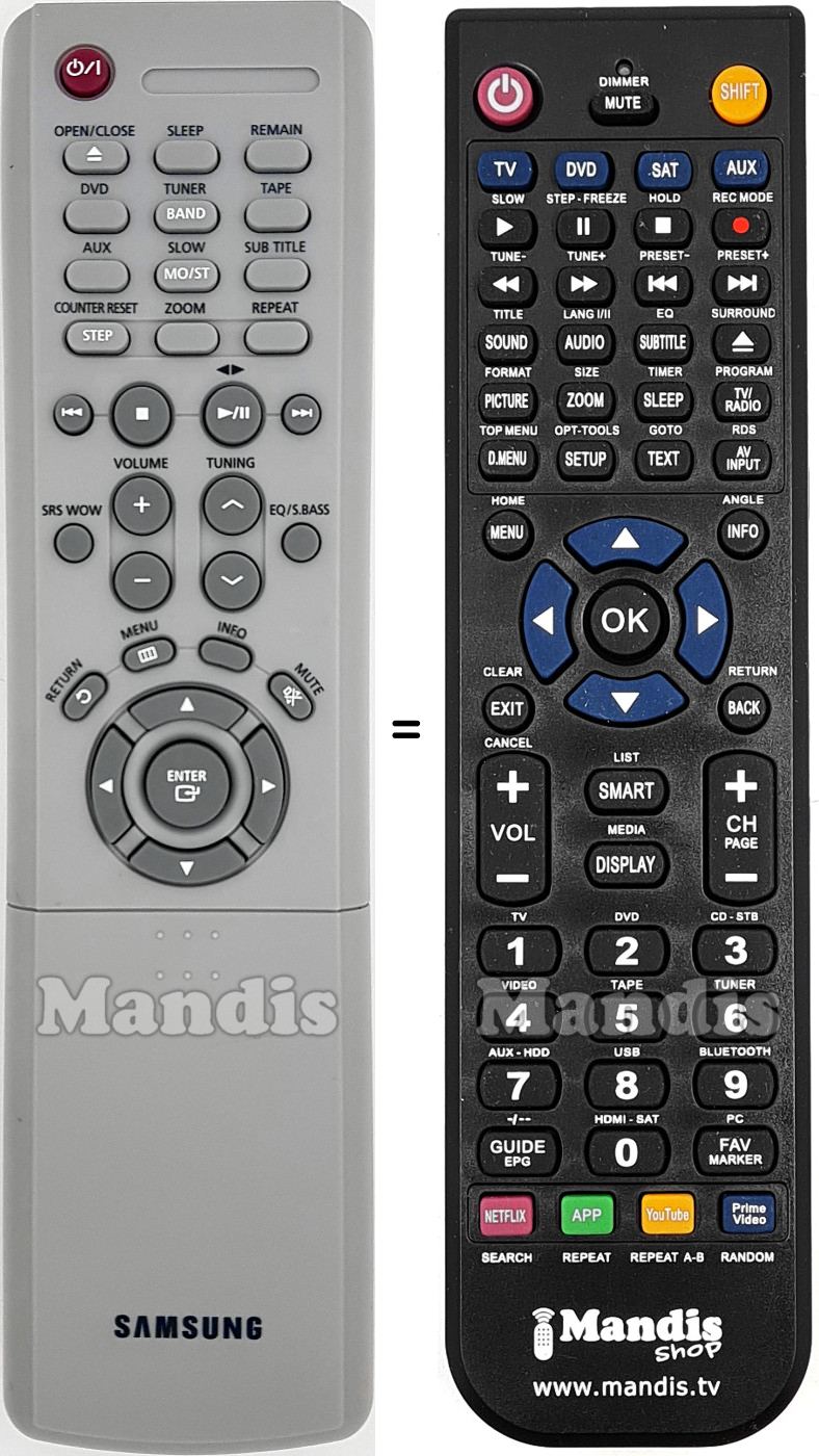 Sí, el comandament equivalent realitza totes les funcions, fins i tot quan el comandament original controla diversos aparells. Al comandament equivalent es poden programar els camps de diferents aparells (TV, DVD, SAT i AUX) d'aquesta manera es pot incloure totes les funcions del comandament original. Si si visualitza el manual de les tecles (instruccions del comandament a distància) podrà comprovar que hi ha totes les funcions.