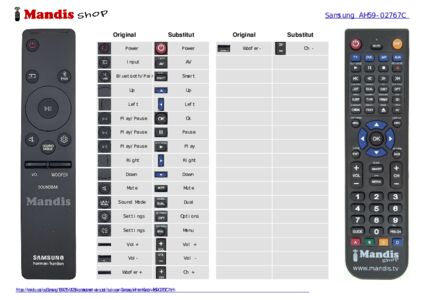 Aquest comandament a distància substitueix completament el teu Harman/Kardon (AH59-02767C) en totes les seves funcions. No és un comandament universal, sinó una còpia exacta del teu original.