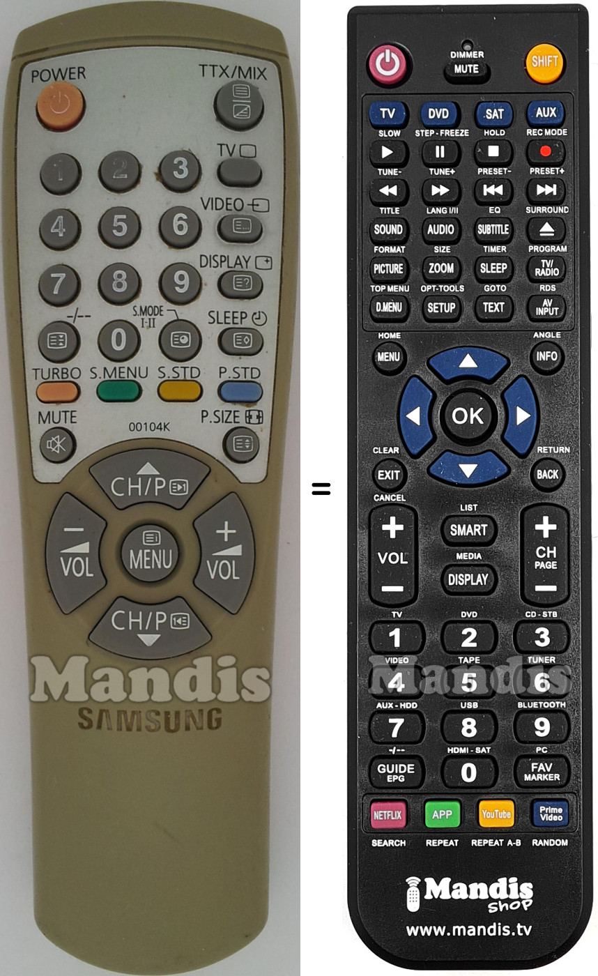 Aquest comandament a distància substitueix completament el teu TM59 (AA5900104K) en totes les seves funcions. No és un comandament universal, sinó una còpia exacta del teu original.