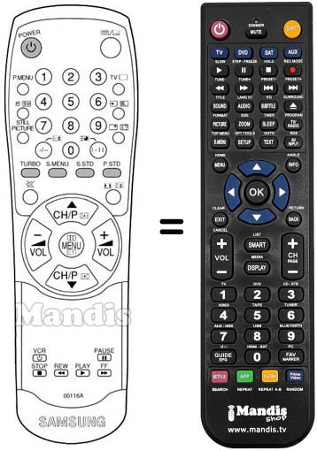Comandament a distància que substitueix el comandament 00116 A en totes les seves funcions.
