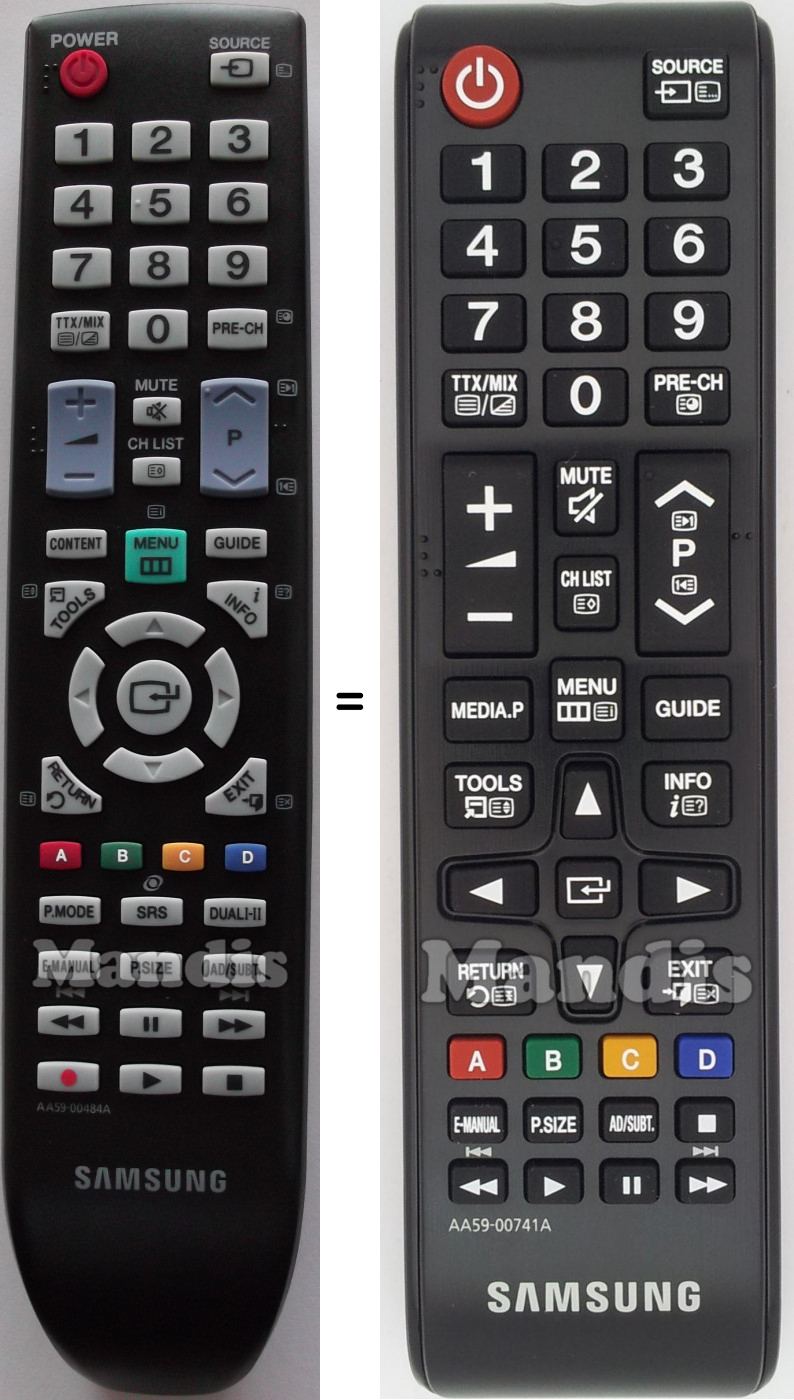 Comandaments equivalents que substitueixen en totes les seves funcions al comandament SAMSUNG TM1240 (AA59-00741A):