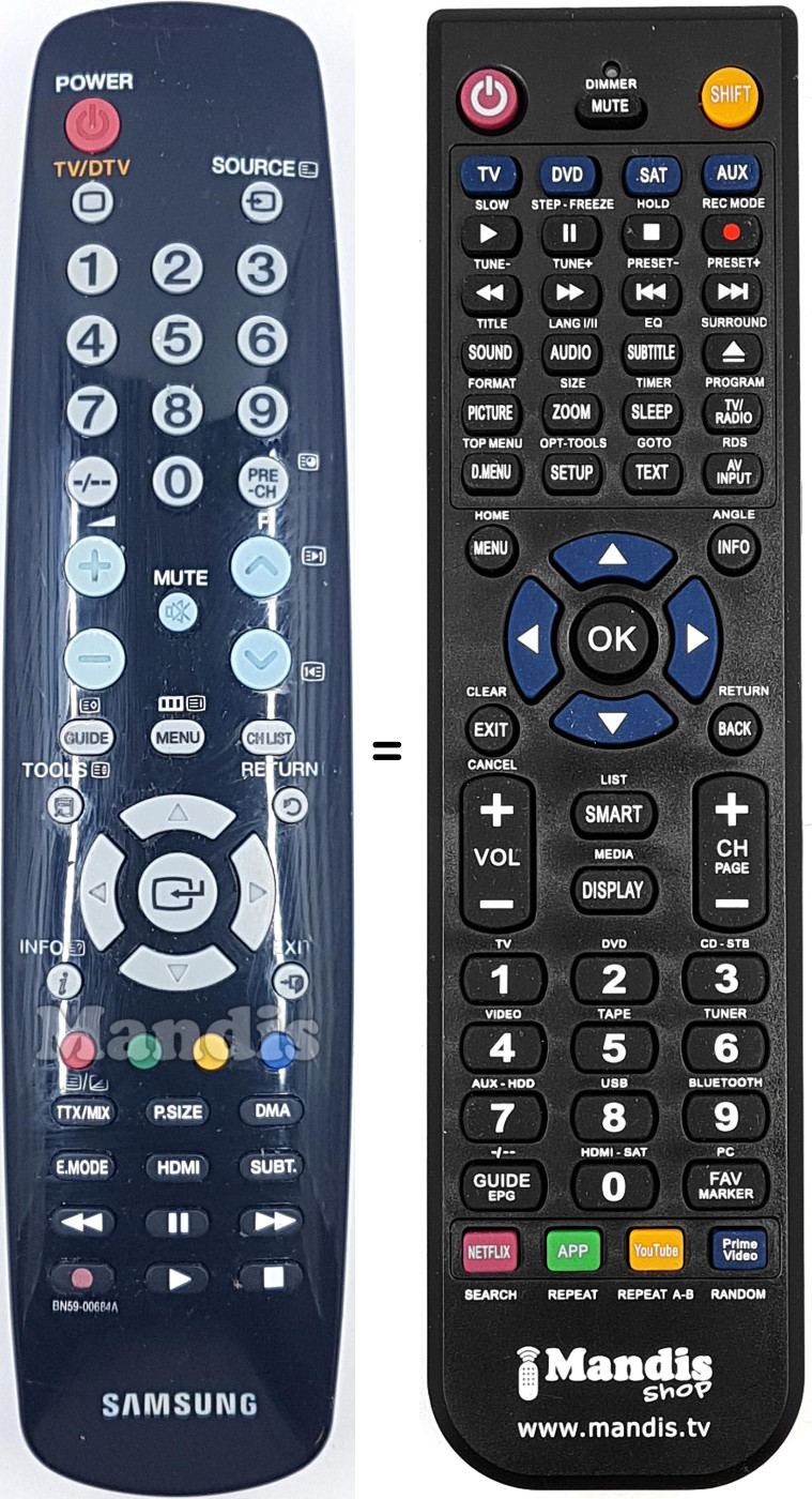 Comandament a distància que substitueix a l'original en totes les seves funcions.