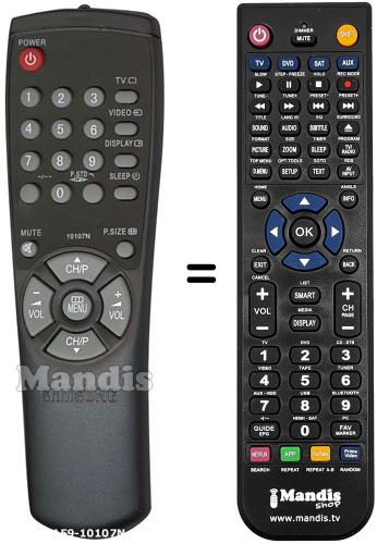El comandament equivalent realitza totes les funcions, fins i tot quan el comandament original controla diversos aparells. Al comandament equivalent es poden programar diferents aparells amb els boton TV, DVD, SAT i AUX, d'aquesta manera es poden incloure totes les funcions del comandament original. Si si visualitza el manual de les tecles (instruccions del comandament a distància) podrà comprovar que hi ha totes les funcions.