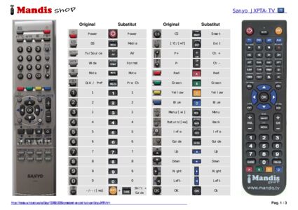 A continuació, us mostrarem la correspondència entre cada un dels botons del comandament original i el botó que realitza la mateixa funció en el comandament de substitució. En alguns casos, és possible que necessiti prémer la tecla SHIFT abans de prémer un altre botó per realitzar certes accions. Aquestes funcions addicionals sovint no s'utilitzen gaire i s'inclouen per facilitar la comprensió del comandament de substitució, o perquè el comandament original té més botons que el seu equivalent.
