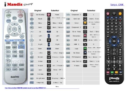 A continuació, us mostrarem la correspondència entre cada un dels botons del comandament original i el botó que realitza la mateixa funció en el comandament de substitució. En alguns casos, és possible que necessiti prémer la tecla SHIFT abans de prémer un altre botó per realitzar certes accions. Aquestes funcions addicionals sovint no s'utilitzen gaire i s'inclouen per facilitar la comprensió del comandament de substitució, o perquè el comandament original té més botons que el seu equivalent.