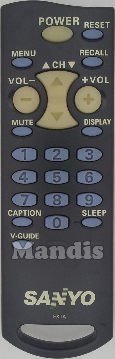 Comandament a distància original FXTA que serveix per televisors de la marca Sanyo. Es tracta d'un model original de comandament a distància.
