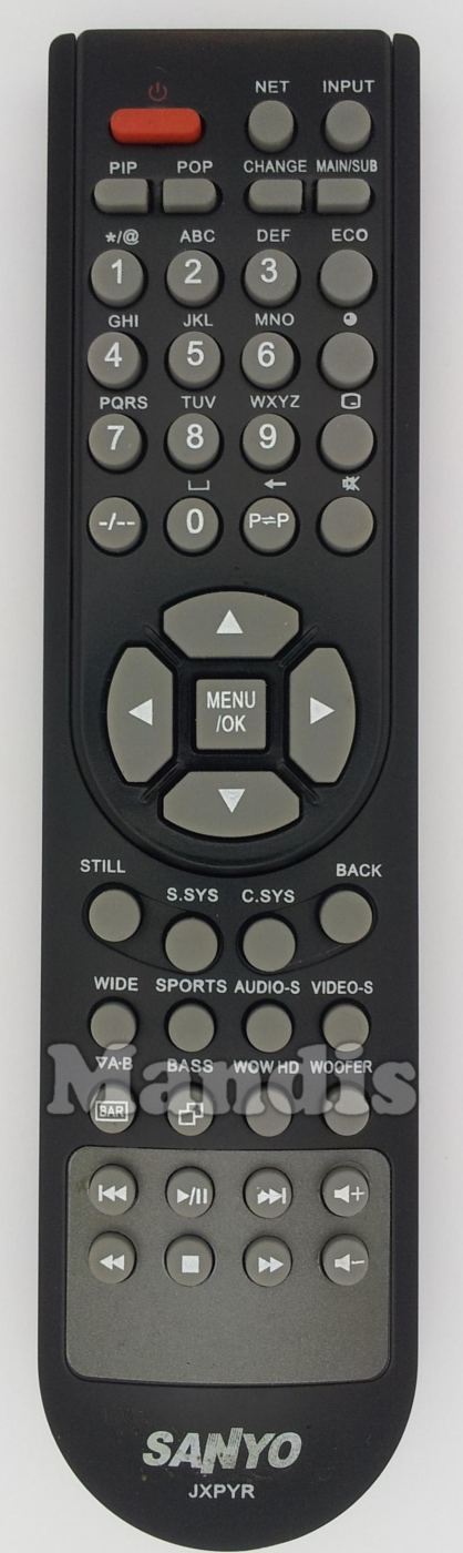 Comandament a distància original JXPYR de la marca Sanyo. Es tracta d'un model original de comandament a distància.