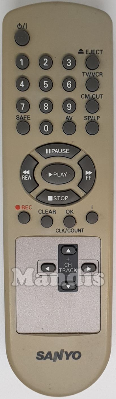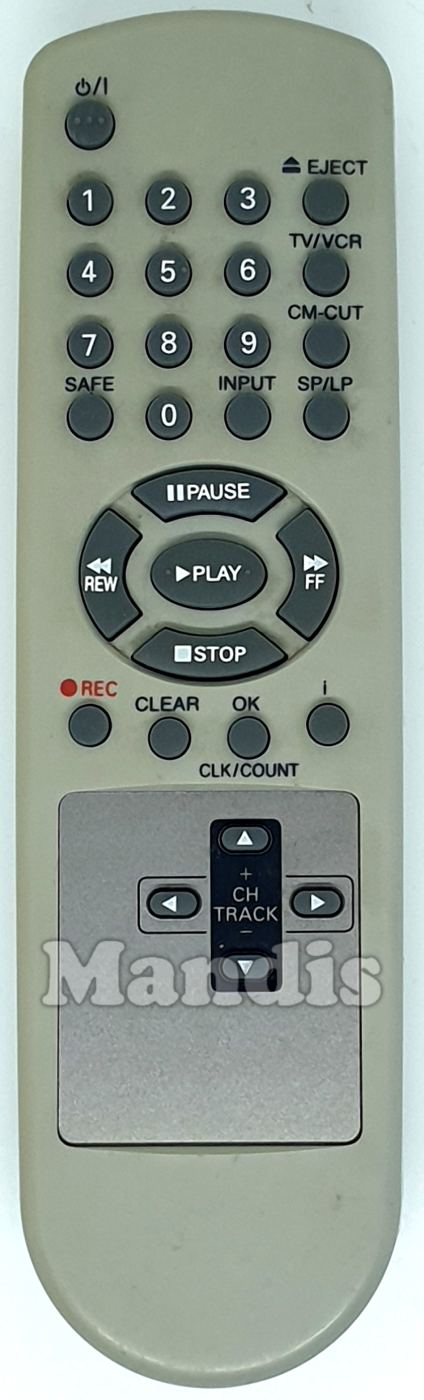 Power, 1, 2, 3, Eject, TV/VCR, CM-CUT, SP/LP, 4, 5, 6, 7, 8, 9, 0, Safe, AV, Pause, Stop, << REW, >> FF, Play, REC, Clear, OK/CLK/Count, i, CH Track+, CH Track-, Left, Right