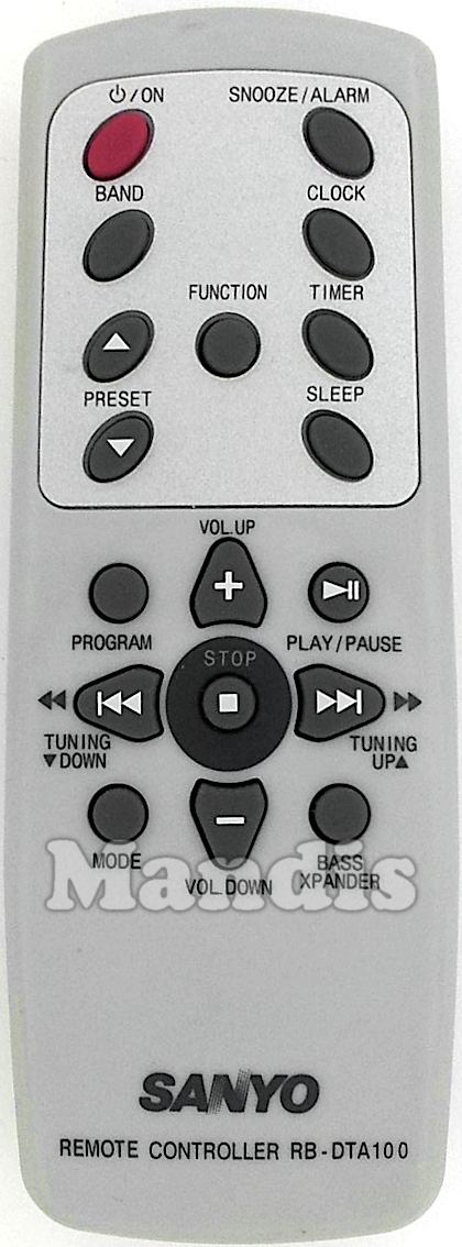 Comandament a distància original RB-DTA100 que serveix per cadena hi-fi de la marca Sanyo. Es tracta d'un model original de comandament a distància.