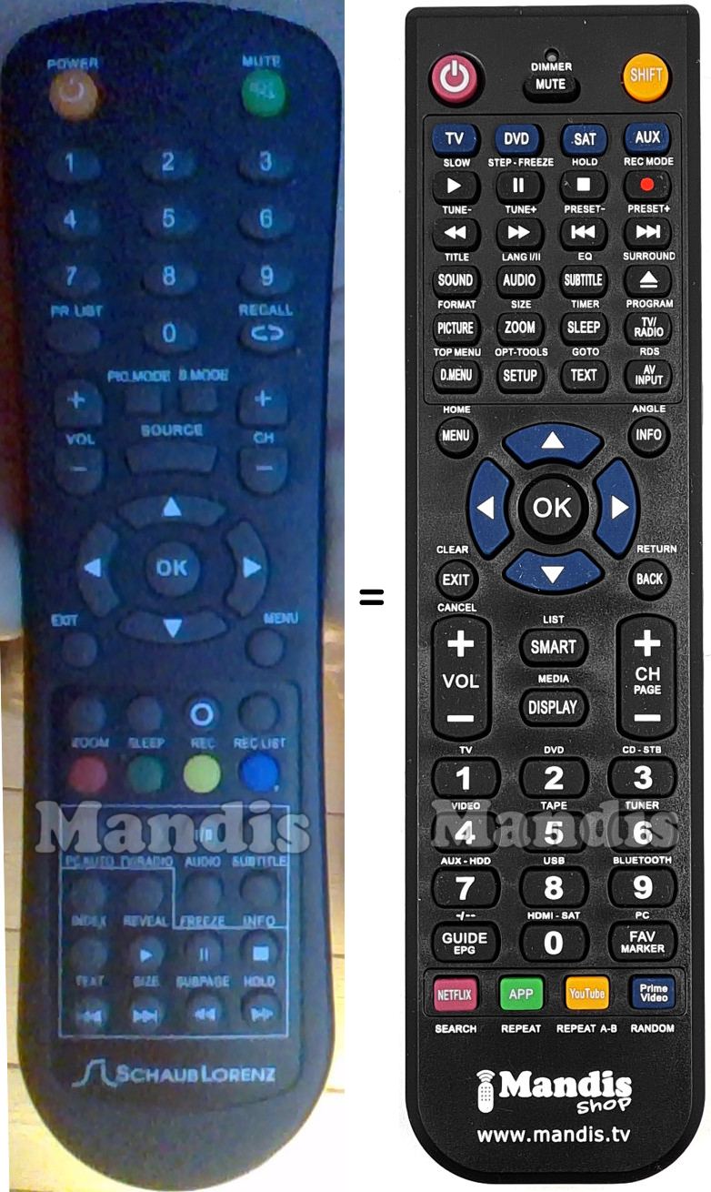 A continuació, us mostrarem la correspondència entre cada un dels botons del comandament original i el botó que realitza la mateixa funció en el comandament de substitució. En alguns casos, és possible que necessiti prémer la tecla SHIFT abans de prémer un altre botó per realitzar certes accions. Aquestes funcions addicionals sovint no s'utilitzen gaire i s'inclouen per facilitar la comprensió del comandament de substitució, o perquè el comandament original té més botons que el seu equivalent.